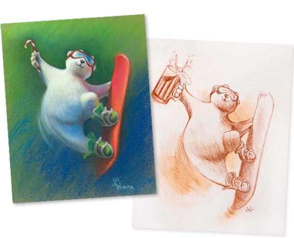 My most recent seasonal fine art pieces Snowboarding Bear Ornament and Polar Beer are now available as prints and greeting cards on my FINE ART AMERICA Holiday Collection page!